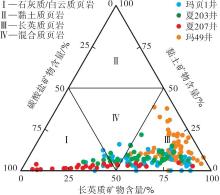 | 泥级长英质纹层 | 夏203井 | 4 678.7 | 3.06 | 10.02 | 12.98 | 434 | 424.2 | 石英/长石晶间孔、 粒内孔、顺层缝 | 351.4 | 327.5 | 0.88 |